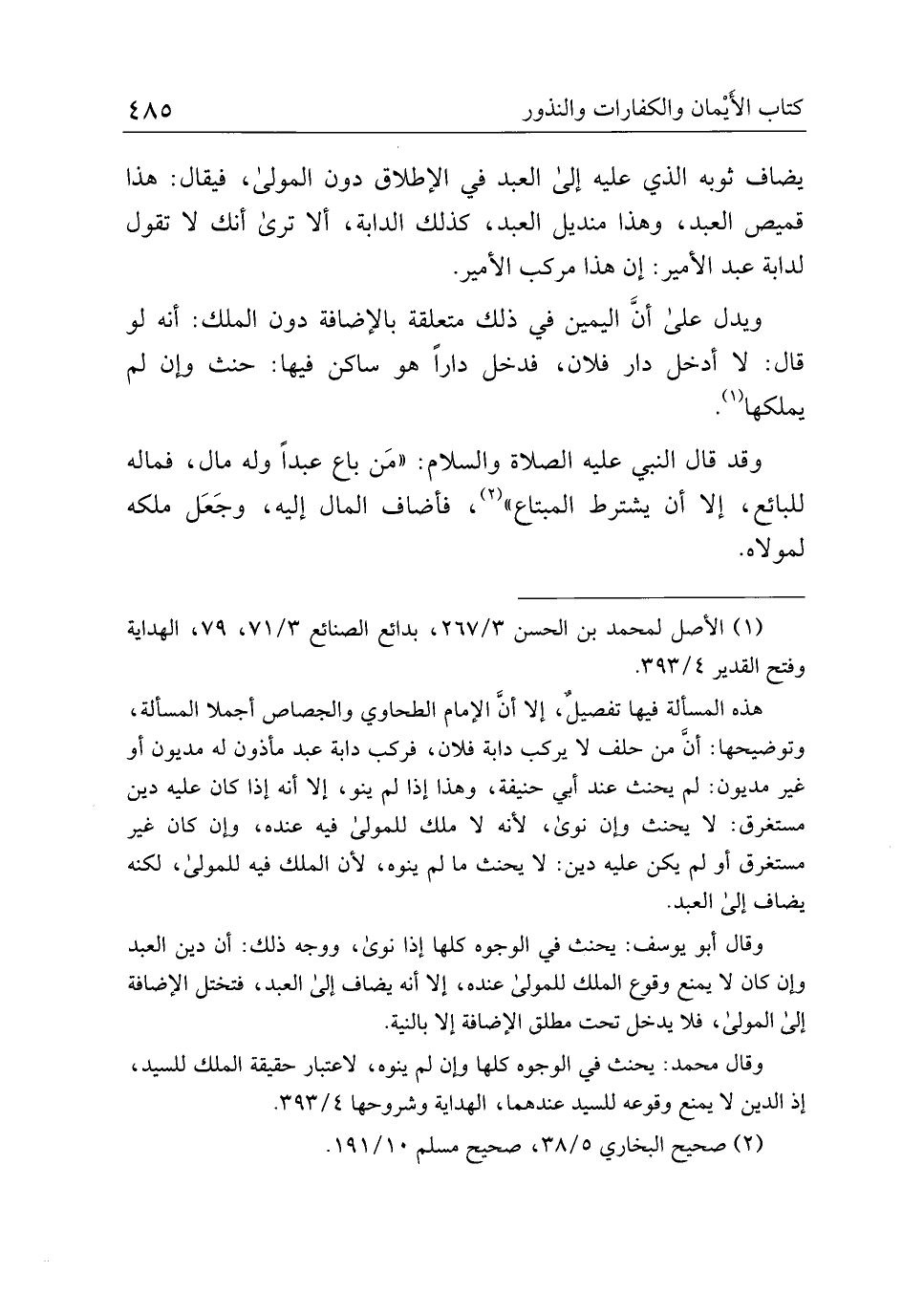 يضاف ثوبه الذي عليه إلى العبد في الإطلاق دون المولى، فيقال: هذا قميص العبد، وهذا منديل العبد، كذلك الدابة، ألا ترى أنك لا تقول لدابة عبد الأمير: إن هذا مركب الأمير.