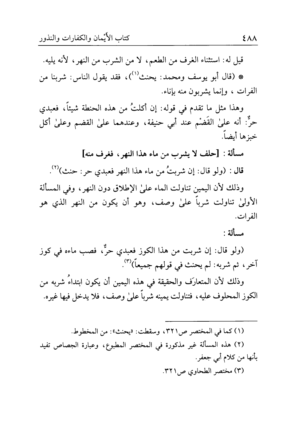 وذلك لأن اليمين تناولت الماء على الإطلاق دون النهر، وفي المسألة الأولى تناولت شربًا على وصف، وهو أن يكون من النهر الذي هو الفرات.