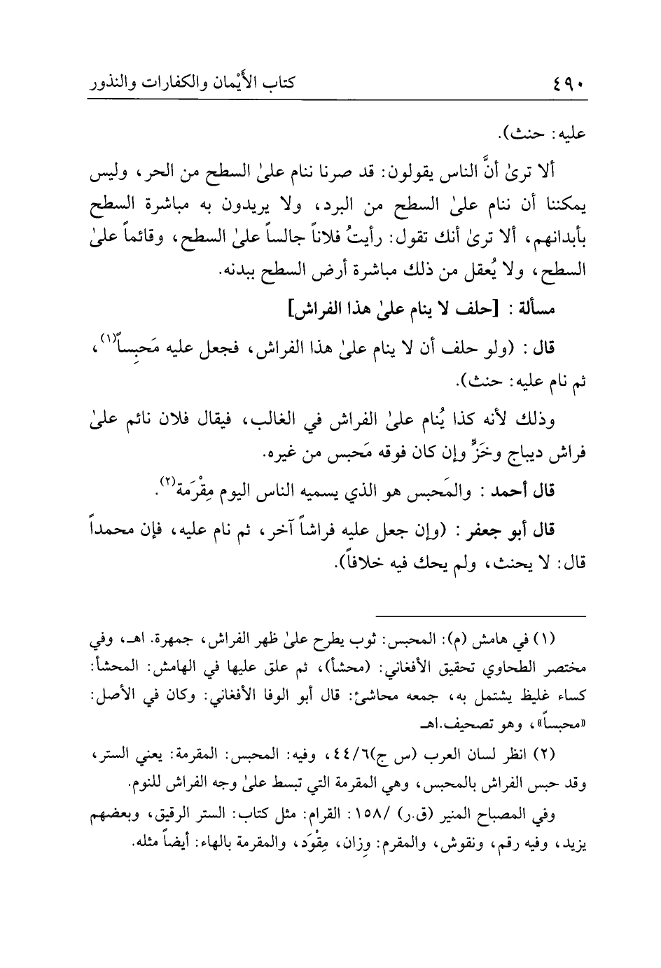 قال أبو جعفر: (وإن جعل عليه فراشًا آخر، ثم نام عليه، فإن محمدًا قال: لا يحنث، ولم يحك فيه خلافًا).