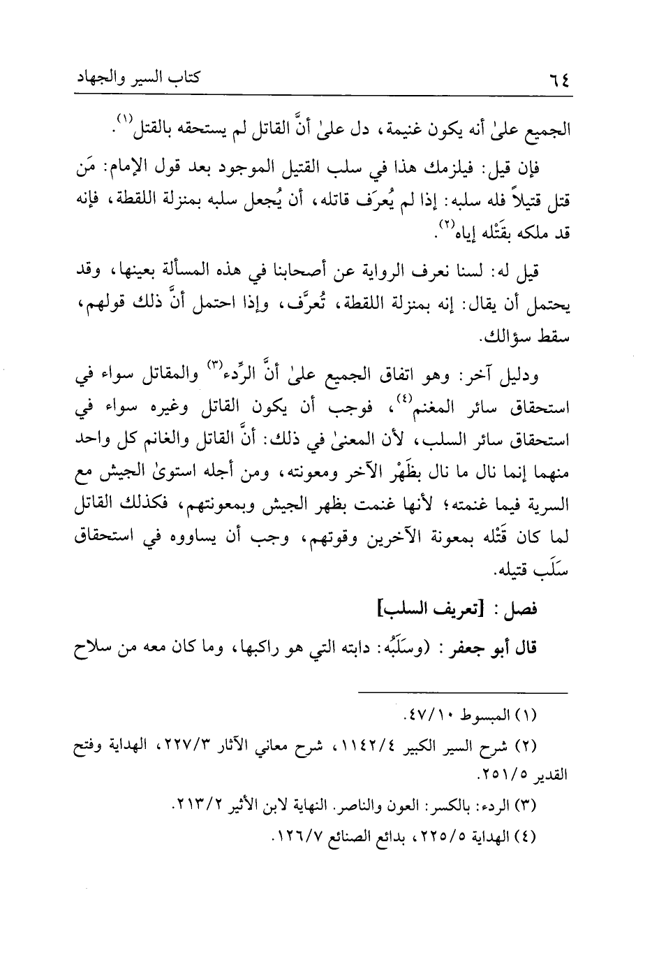 قال أبو جعفر: (وسلبه: دابته التي هو راكبها، وما كان معه من سلاح