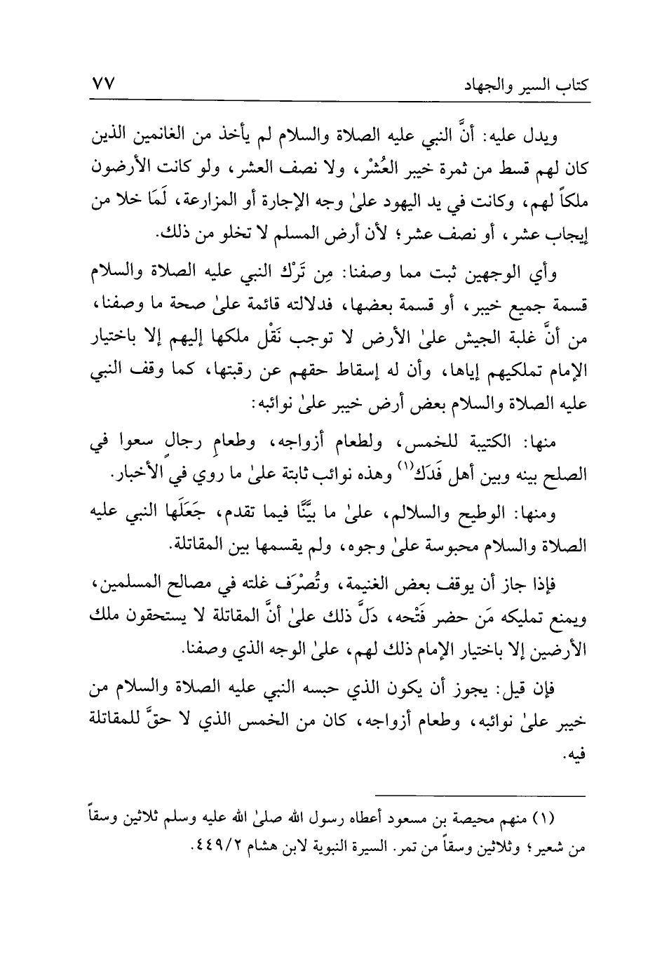 ويدل عليه: أن النبي عليه الصلاة والسلام لم يأخذ من الغانمين الذين كان لهم قسط من ثمرة خيبر العشر، ولا نصف العشر، ولو كانت الأرضون ملكًا لهم، وكانت في يد اليهود على وجه الإجارة أو المزارعة، لما خلا من إيجاب عشر، أو نصف عشر؛ لأن أرض المسلم لا تخلو من ذلك.