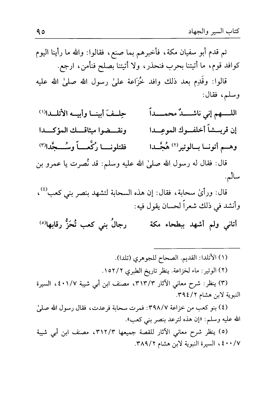 قال: ورأى سحابة، فقال: إن هذه السحابة لتشهد بنصر بني كعب، وأنشد في ذلك شعرًا لحسان يقول فيه: