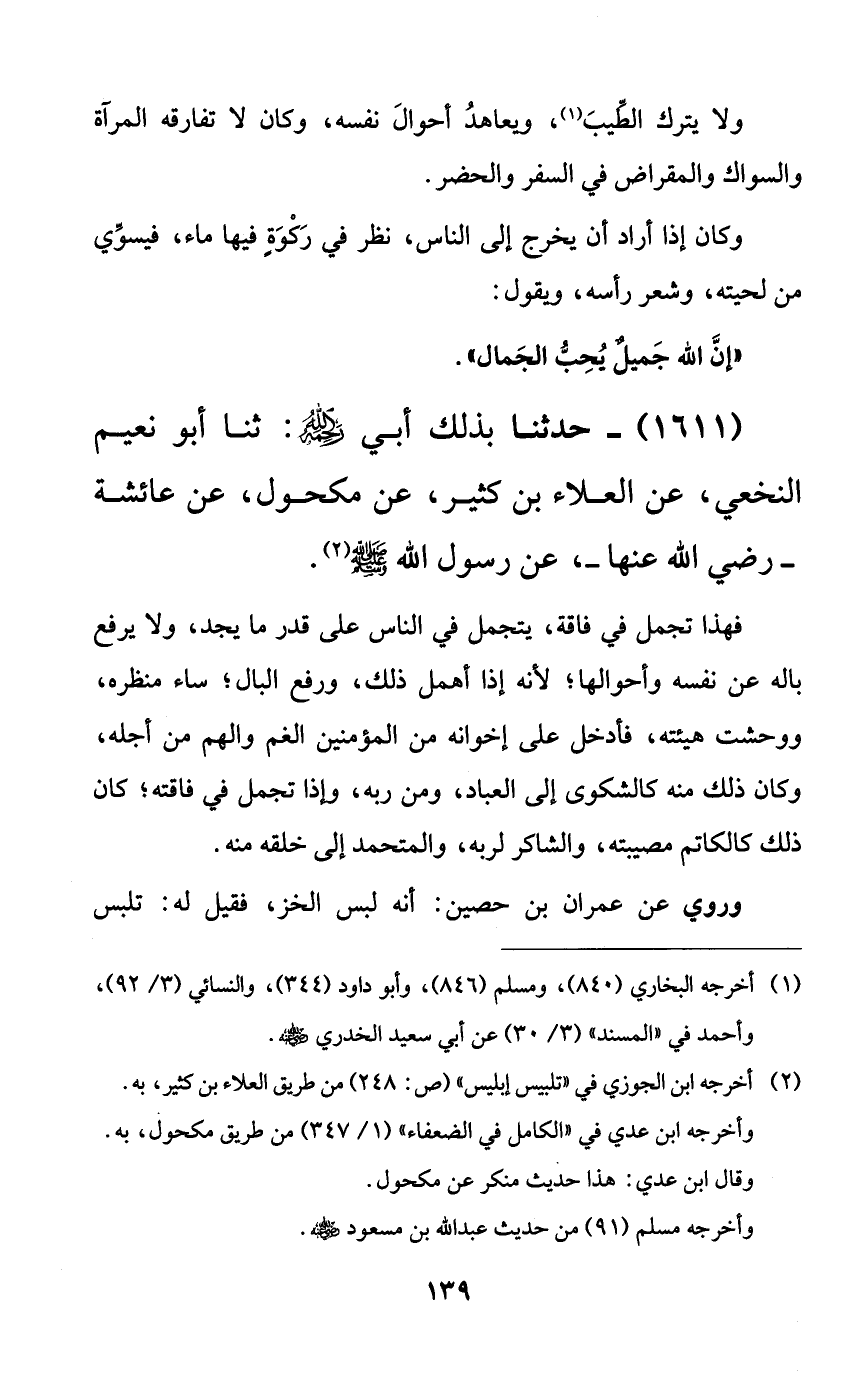1611 - حدثنا بذلك أبي رحمه الله: ثنا أبو نعيم النخعي، عن العلاء بن كثير، عن مكحول، عن عائشة -رضي الله عنها-، عن رسول الله صلى الله عليه وسلم.