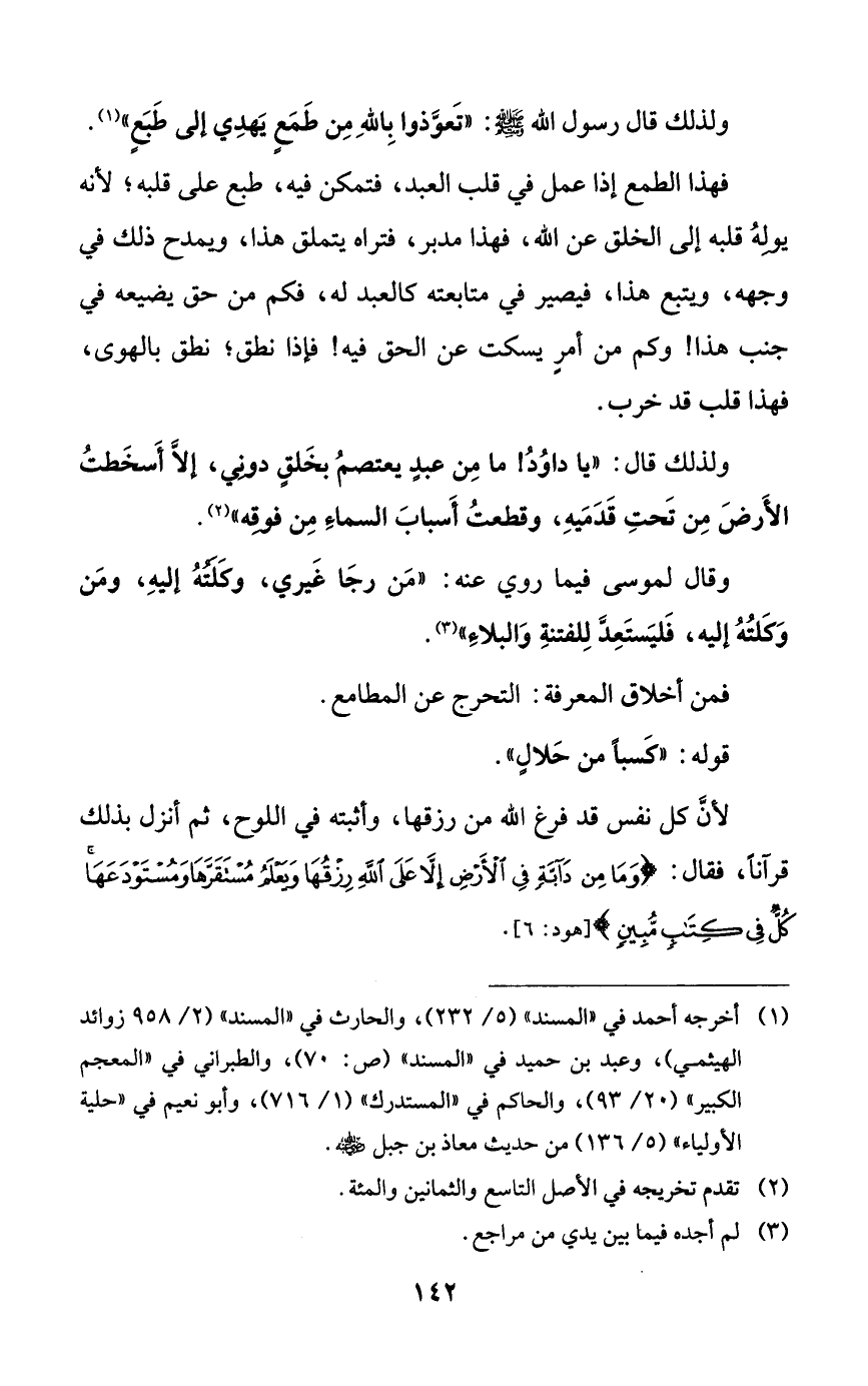 فمن أخلاق المعرفة: التحرج عن المطامع.
