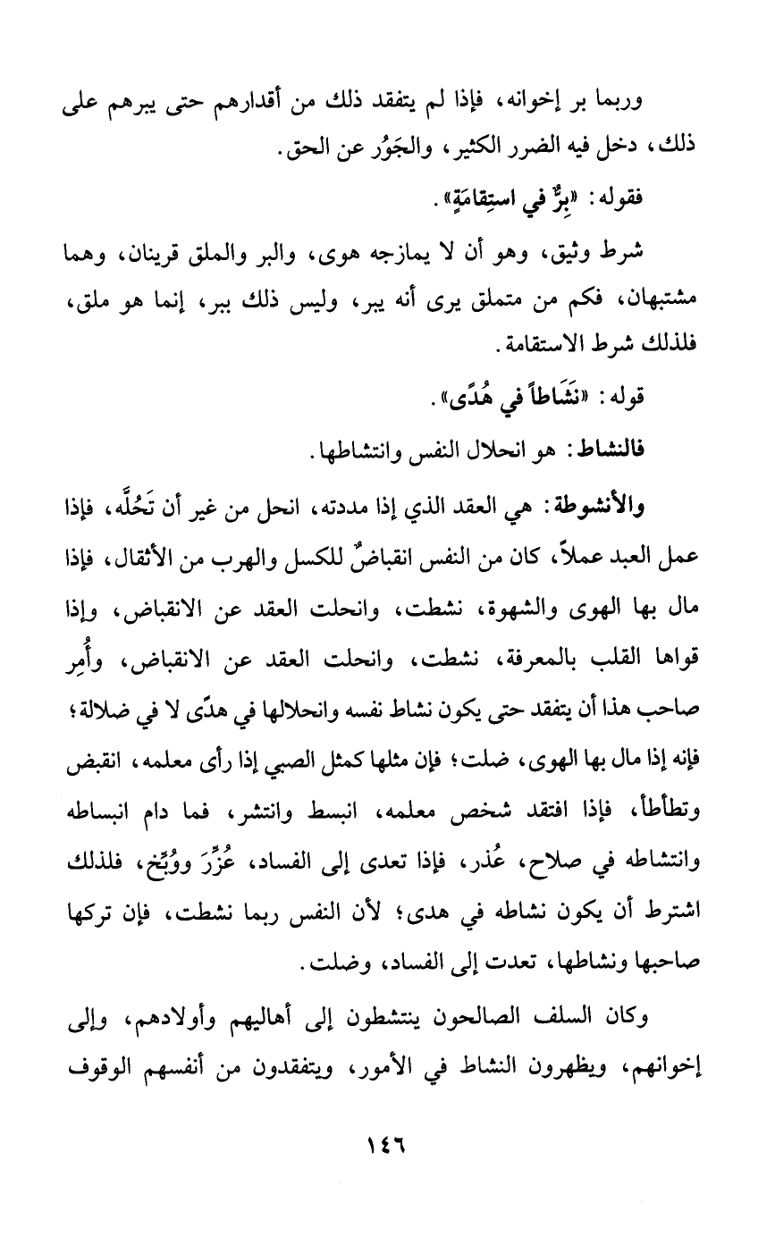 وكان السلف الصالحون ينتشطون إلى أهاليهم وأولادهم، وإلى إخوانهم، ويظهرون النشاط في الأمور، ويتفقدون من أنفسهم الوقوف