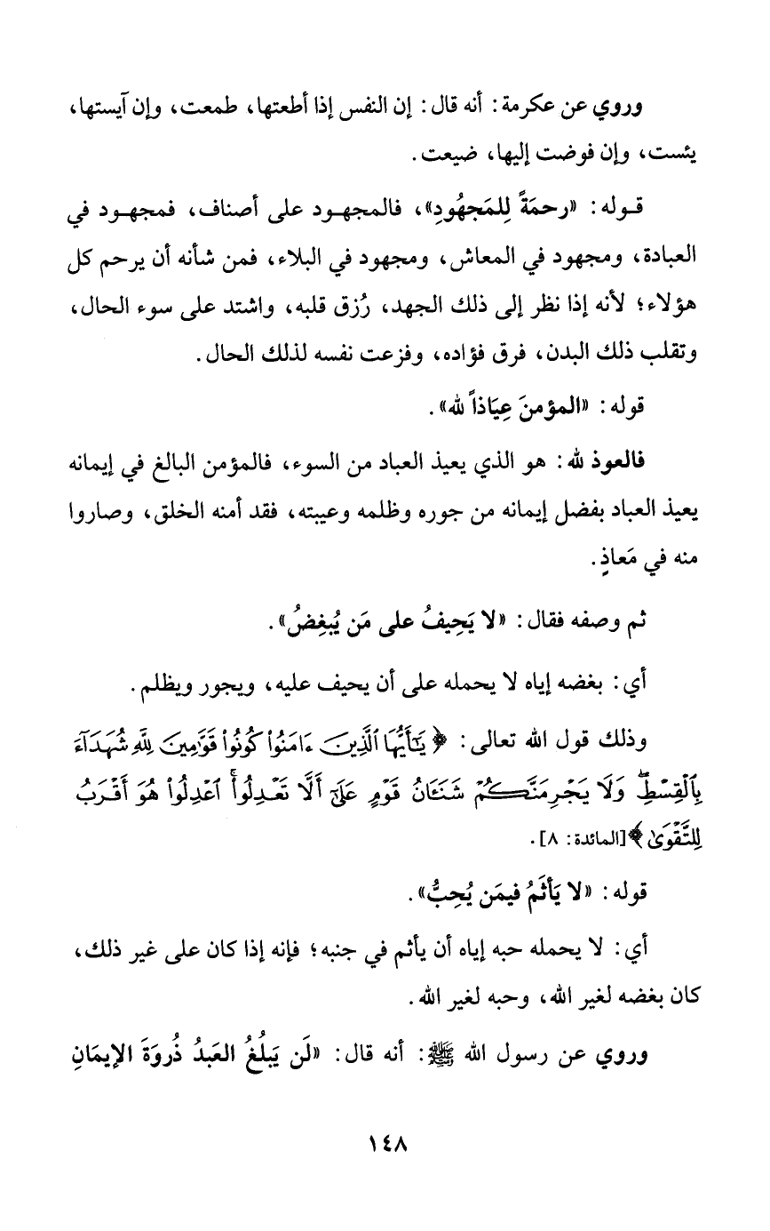 وروي عن رسول الله صلى الله عليه وسلم: أنه قال: ((لن يبلغ العبد ذروة الإيمان
