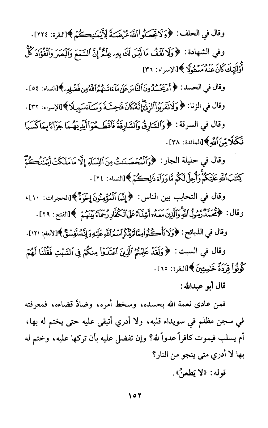 وفي الشهادة: {ولا تقف ما ليس لك به علمٌ إن السمع والبصر والفؤاد كل أولئك كان عنه مسئولاً}.