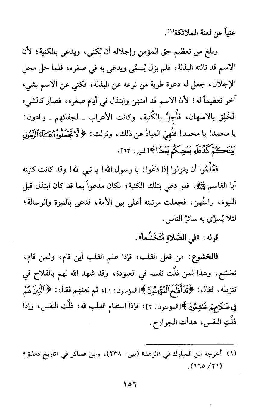 وبلغ من تعظيم حق المؤمن وإجلاله أن يكنى، ويدعى بالكنية؛ لأن الاسم قد نالته البذلة، فلم يزل يسمى ويدعى به في صغره، فلما حل محل الإجلال، جعل له دعوة طرية من نوعه عن البذلة، فكني عن الاسم بشيء آخر تعظيماً له؛ لأن الاسم قد امتهن وابتذل في أيام صغره، فصار كالشيء الخلق بالامتهان، فأجل بالكنية، وكانت الأعراب -لجفائهم- ينادون: يا محمد! يا محمد! فنهي العباد عن ذلك، ونزلت: {لا تجعلوا دعاء الرسول بينكم كدعاء بعضكم بعضاً}.