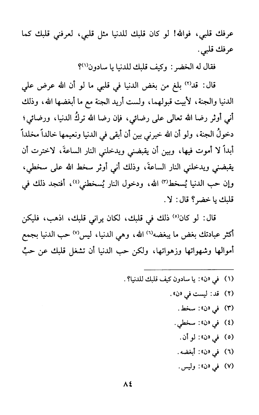 فقال له الخضر: وكيف قلبك للدنيا يا سادون؟