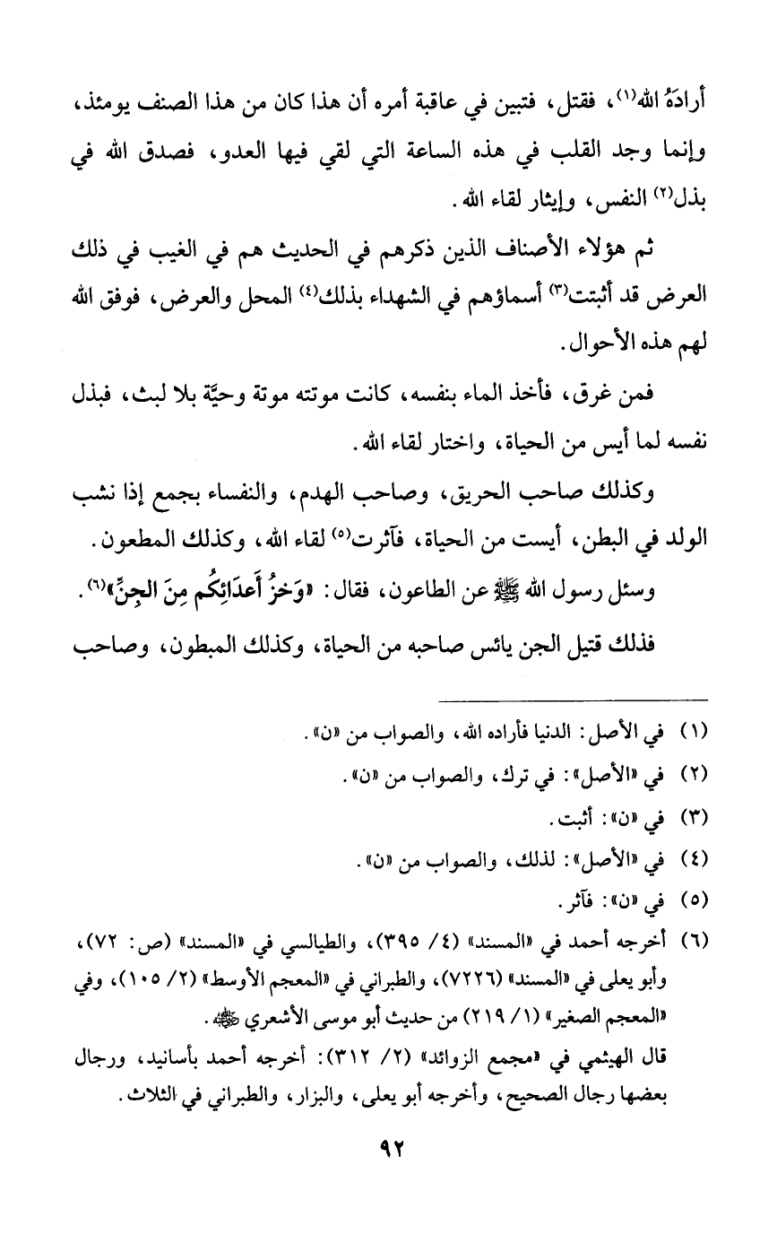 فذلك قتيل الجن يائس صاحبه من الحياة، وكذلك المبطون، وصاحب