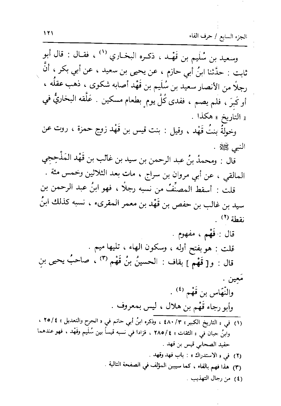 وَسَعِيد بن سليم بن قهد ذكره البُخَارِيّ فَقَالَ: قَالَ أَبُو ثَابت: حَدثنَا ابْن أبي حَازِم عَن يحيى بن سعيد عَن أبي بكر أَن رجلا من الْأَنْصَار سعيد بن سليم بن قهد أَصَابَهُ شكوى ذهب عقله أَو كبر فَلم يصم ففدى كل يَوْم بِطَعَام مِسْكين. علقه البُخَارِيّ فِي التَّارِيخ هَكَذَا. وَخَوْلَة بنت قهد وَقيل: بنت قيس بن قهد زوج حَمْزَة رَوَت عَن النَّبِي صلى الله عَلَيْهِ وَسلم. قَالَ: وَمُحَمّد بن عبد الرَّحْمَن بن سيد بن غَالب بن قهد الْمذْحِجِي المالقي عَن أبي مَرْوَان بن سراج مَاتَ بعد الثَّلَاثِينَ وَخمْس مئة. قلت: أسقط المُصَنّف من نسبه رجلا فَهُوَ ابْن عبد الرَّحْمَن بن سيد بن غَالب بن حَفْص بن قهد بن معمر الْمُقْرِئ نسبه كَذَلِك ابْن نقطة. قَالَ: فهم مَفْهُوم. قلت: هُوَ بِفَتْح أَوله وَسُكُون الْهَاء تَلِيهَا مِيم. قَالَ: و [قهم] بقاف: الْحُسَيْن بن قهم صَاحب يحيى بن معِين. والنهاس بن قهم. وَأَبُو رَجَاء قهم بن هِلَال لَيْسَ بِمَعْرُوف.