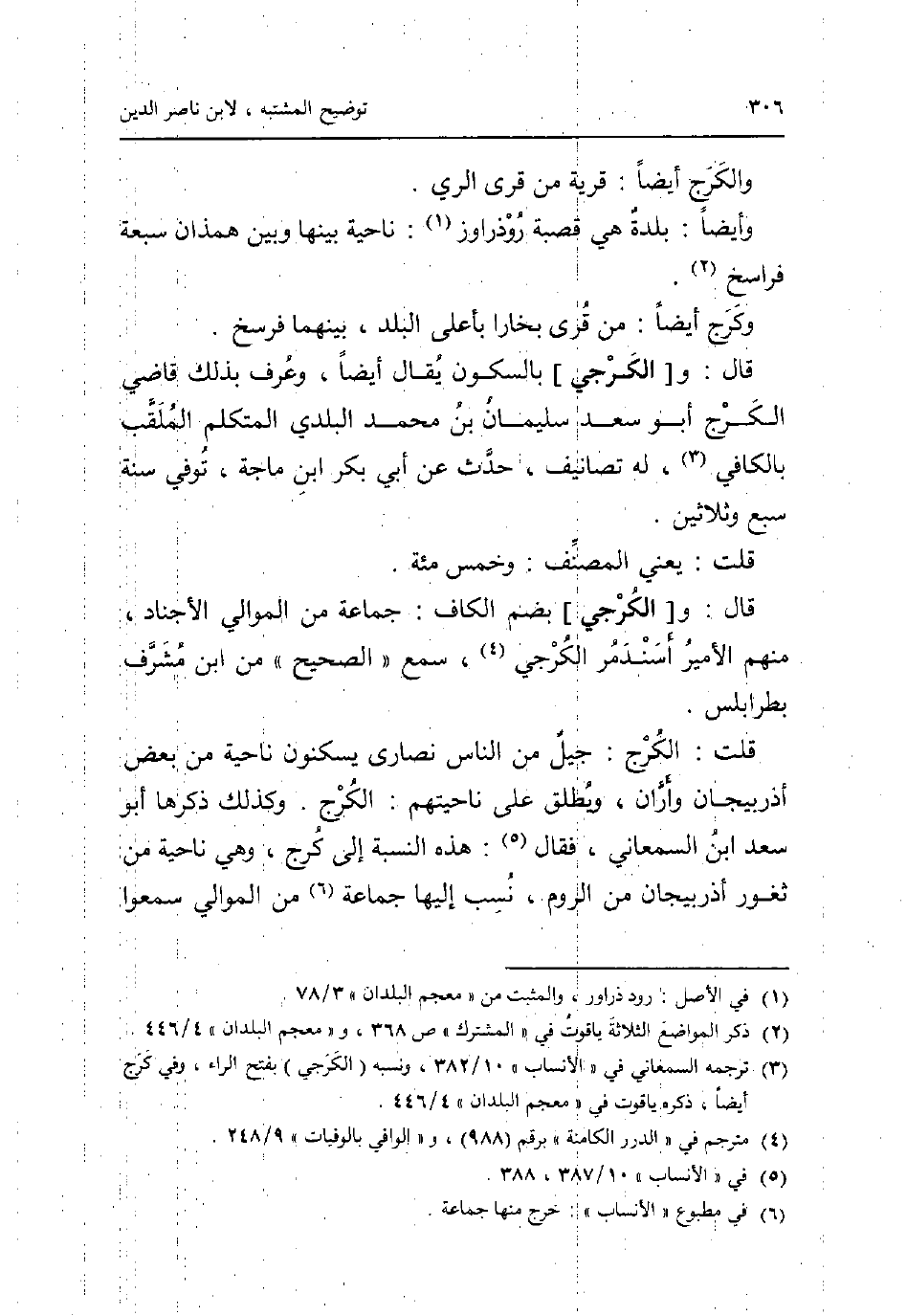 والكرج أَيْضا: قَرْيَة من قرى الرّيّ. وَأَيْضًا: بَلْدَة هِيَ قَصَبَة روذراوز: نَاحيَة بَينهَا وَبَين همذان سَبْعَة فراسخ. وكرج أَيْضا: من قرى بخارا بِأَعْلَى الْبَلَد بَينهمَا فَرسَخ. قَالَ: و [الكرجي] بِالسُّكُونِ يُقَال أَيْضا وَعرف بذلك قَاضِي الكرج أَبُو سعد سُلَيْمَان بن مُحَمَّد الْبَلَدِي الْمُتَكَلّم الملقب بالكافي لَهُ تصانيف حدث عَن أبي بكر ابْن ماجة توفّي سنة سبع وَثَلَاثِينَ. قلت: يَعْنِي المُصَنّف: وَخمْس مئة. قَالَ: و [الكرجي] بِضَم الْكَاف: جمَاعَة من الموَالِي الأجناد مِنْهُم الْأَمِير أسندمر الكرجي سمع الصَّحِيح من ابْن مشرف بطرابلس. قلت: الكرج: جيل من النَّاس نَصَارَى يسكنون نَاحيَة من بعض أذربيجان وأران وَيُطلق على ناحيتهم: الكرج. وَكَذَلِكَ ذكرهَا أَبُو سعد ابْن السَّمْعَانِيّ فَقَالَ: هَذِه النِّسْبَة إِلَى كرج وَهِي نَاحيَة من ثغور أذربيجان من الرّوم نسب إِلَيْهَا جمَاعَة من الموَالِي سمعُوا