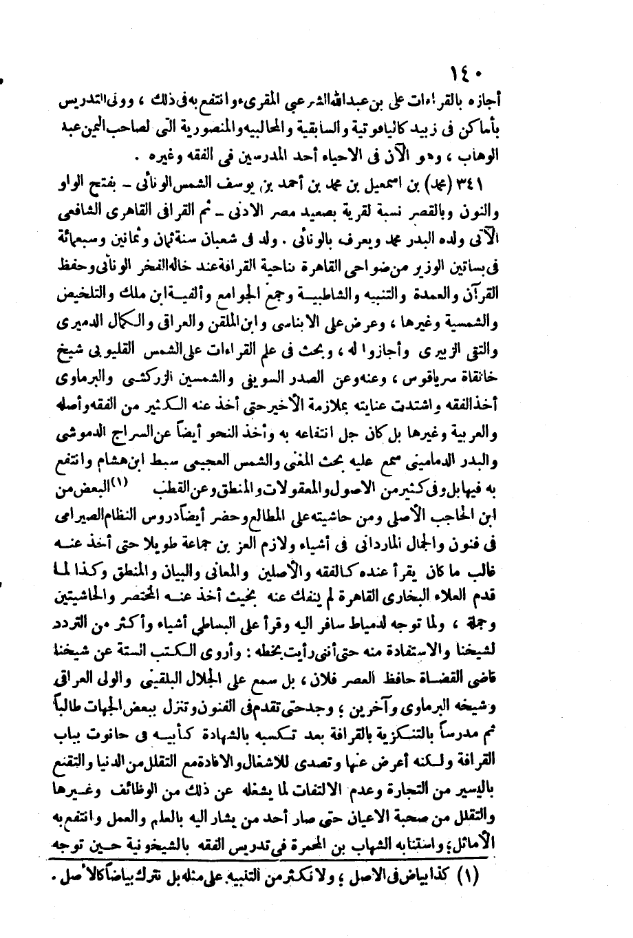 وَالْوَلِيّ الْعِرَاقِيّ وَشَيْخه البرقاوي وَآخَرين وجد حَتَّى تقدم فِي الْفُنُون وتنزل بِبَعْض الْجِهَات طَالبا ثمَّ مدرسا بالتنكزية بالقرافة بعد تكسبه بِالشَّهَادَةِ كأبيه فِي حَانُوت بِبَاب القرافة وَلكنه أعرض عَنْهَا وتصدى للأشغال والإفادة مَعَ التقلل من الدُّنْيَا والتقنع الْيَسِير من التِّجَارَة وَعدم الِالْتِفَات لما يشْغلهُ عَن ذَلِك من الْوَظَائِف وَغَيرهَا والتقلل من صُحْبَة الْأَعْيَان حَتَّى صَار أحد من يشار إِلَيْهِ بِالْعلمِ وَالْعَمَل وانتفع بِهِ الأمائل واستتابه الشهَاب بن المحمرة فِي تدريس الْفِقْه بالشيخونية حِين توجه