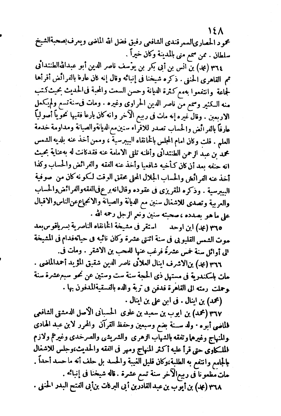 ذكره شَيخنَا فِي إنبائه وَقَالَ إِنَّه كَانَ عَارِفًا بالفرائض أقرأها لجَماعَة وانتفعوا بِهِ مَعَ كَثْرَة الدّيانَة وَحسن السمت والمحبة فِي الحَدِيث بِحَيْثُ كتب مِنْهُ الْكثير وَسمع من نَاصِر الدّين الحراوي وَغَيره. وَمَات فِي سنة تسع وَلم يكمل الْأَرْبَعين. وَقَالَ غَيره أَنه مَاتَ فِي ربيع الآخر وَإنَّهُ كَانَ بارعا فَقِيها نحويا أصوليا عَارِفًا بالفرائض والحساب تصدر للإقراء سِنِين مَعَ الدّيانَة والصيانة ومداومة خدمَة الْعلم. قلت وَكَانَ إِمَام الْمجْلس بالخانقاة البيبرسية، وَمِمَّنْ أَخذ عَنهُ بلدية الشَّمْس مُحَمَّد بن عبد الرَّحْمَن الطنتدائي وَأَظنهُ تلقى الْإِمَامَة عَنهُ فقد كَانَت لَهُ)