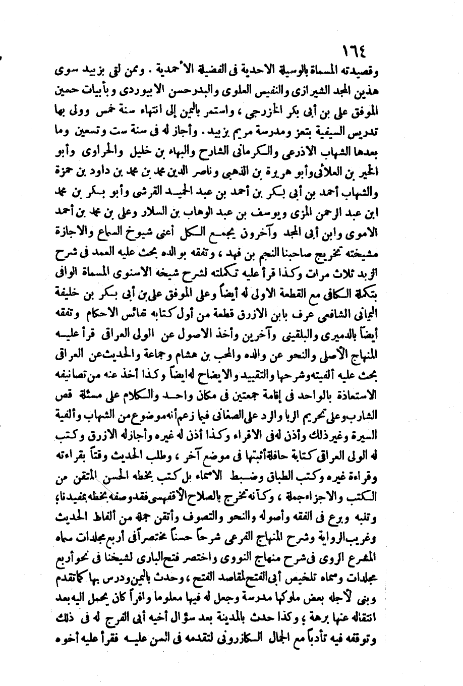 وقصيدته الْمُسَمَّاة بالوسيلة الاحدية فِي الْفَضِيلَة الأحمدية. وَمِمَّنْ لَقِي بزبيد سوى هذَيْن الْمجد الشِّيرَازِيّ والنفيس الْعلوِي والبدر حسن الابيوردي وبأبيات حُسَيْن الْمُوفق على بن أبي بكر)