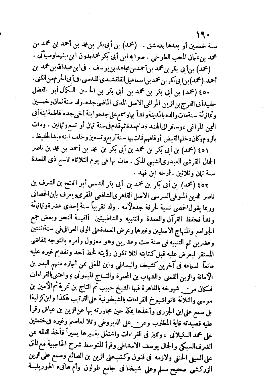 مُحَمَّد بن أبي بكر بن مُحَمَّد بن أَحْمد بن مُجَاهِد بن يُوسُف. فِي ابْن عبد الله بن مُحَمَّد بن أَحْمد. مُحَمَّد بن أبي بكر بن مُحَمَّد بن إِسْمَاعِيل القلقشندي الْقُدسِي. فِي أبي الْحرم من الكني.