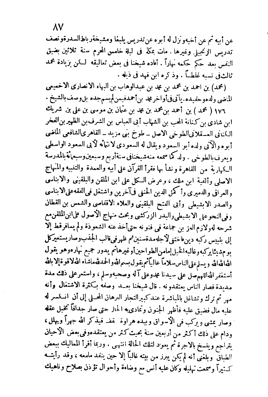أَفَادَهُ شَيخنَا فِي بعض تعاليقه لَكِن بِزِيَادَة مُحَمَّد ثَالِث فِي نسبه غَلطا. وَذكره ابْن فَهد فِي ذيله.