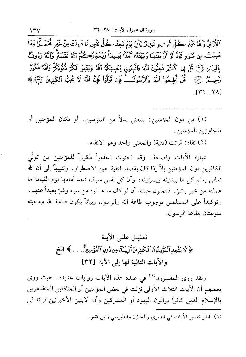 تعليق على الآية لا يَتَّخِذِ الْمُؤْمِنُونَ الْكافِرِينَ أَوْلِياءَ مِنْ دُونِ الْمُؤْمِنِينَ ... إلخ والآيات التالية لها إلى الآية [32]