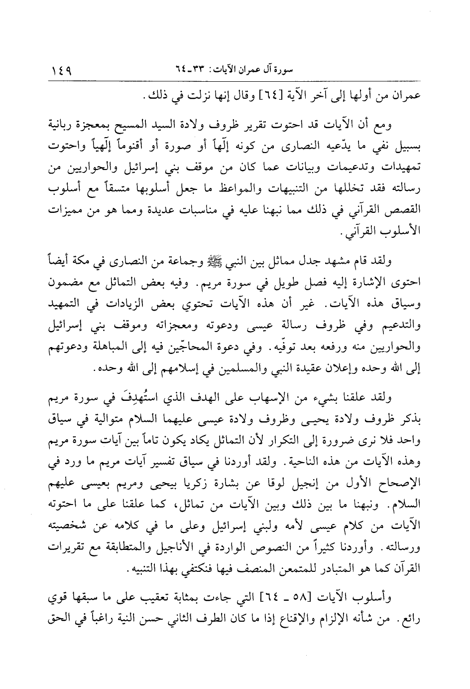 ولقد قام مشهد جدل مماثل بين النبي صلى الله عليه وسلم وجماعة من النصارى في مكة أيضا احتوى الإشارة إليه فصل طويل في سورة مريم. وفيه بعض التماثل مع مضمون وسياق هذه الآيات. غير أن هذه الآيات تحتوي بعض الزيادات في التمهيد والتدعيم وفي ظروف رسالة عيسى ودعوته ومعجزاته وموقف بني إسرائيل والحواريين منه ورفعه بعد توفّيه. وفي دعوة المحاجّين فيه إلى المباهلة ودعوتهم إلى الله وحده وإعلان عقيدة النبي والمسلمين في إسلامهم إلى الله وحده.
