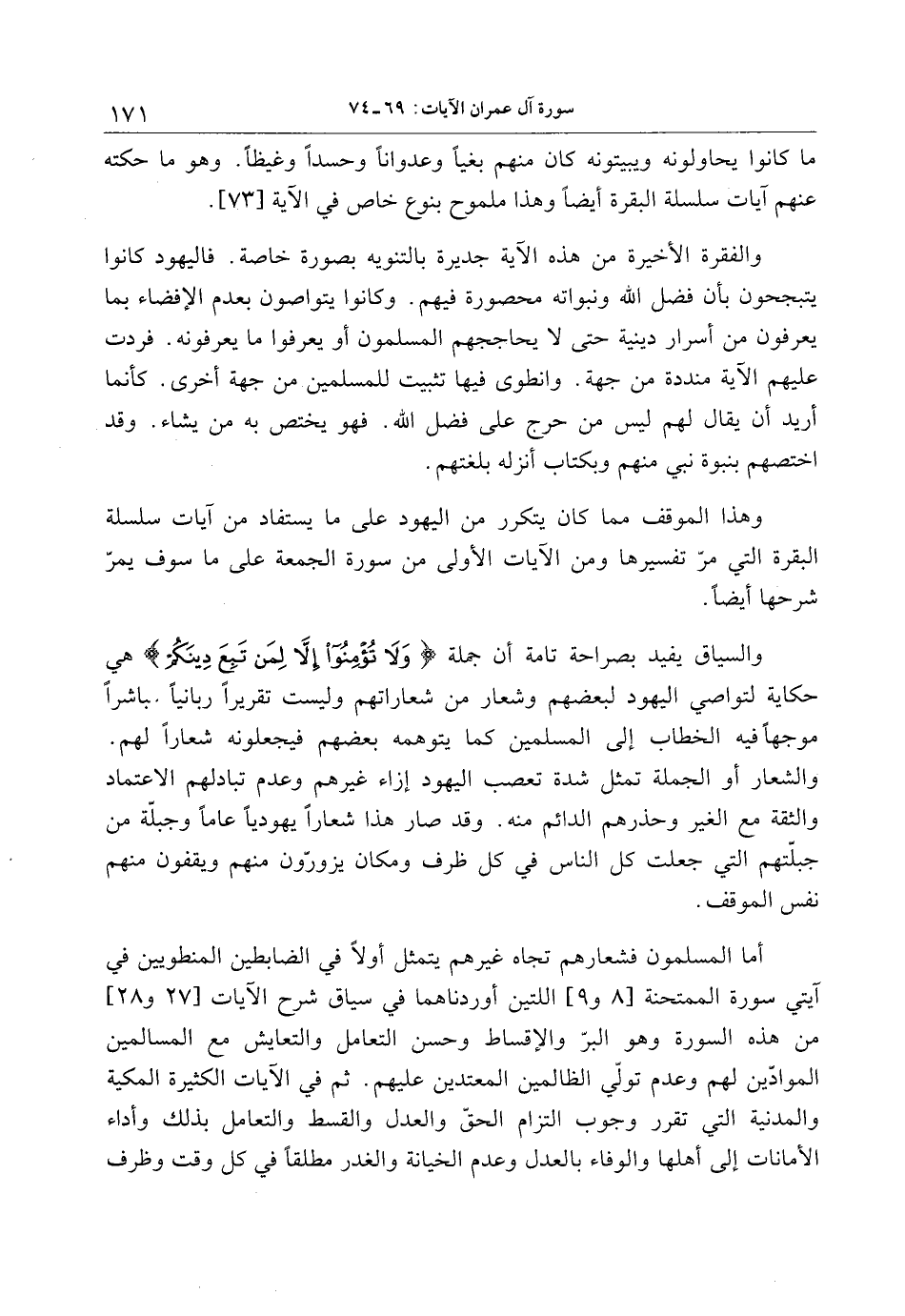 والسياق يفيد بصراحة تامة أن جملة وَلا تُؤْمِنُوا إِلَّا لِمَنْ تَبِعَ دِينَكُمْ هي حكاية لتواصي اليهود لبعضهم وشعار من شعاراتهم وليست تقريرا ربانيا مباشرا موجها فيه الخطاب إلى المسلمين كما يتوهمه بعضهم فيجعلونه شعارا لهم.