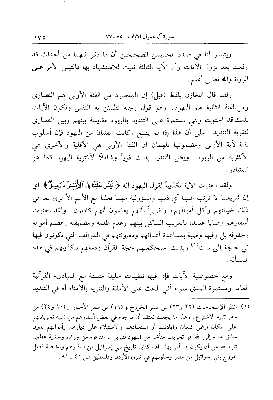 ولقد قال الخازن بلفظ (قيل) إن المقصود من الفئة الأولى هم النصارى ومن الفئة الثانية هم اليهود. وهو قول وجيه تطمئن به النفس وتكون الآيات بذلك قد احتوت وهي مستمرة على التنديد باليهود مقايسة بينهم وبين النصارى لتقوية التنديد. على أن هذا إذا لم يصح وكانت الفئتان من اليهود فإن أسلوب بقية الآية الأولى ومضمونها يلهمان أن الفئة الأولى هي الأقلية والأخرى هي الأكثرية من اليهود. ويظل التنديد بذلك قويا وشاملا لأكثرية اليهود كما هو المتبادر.