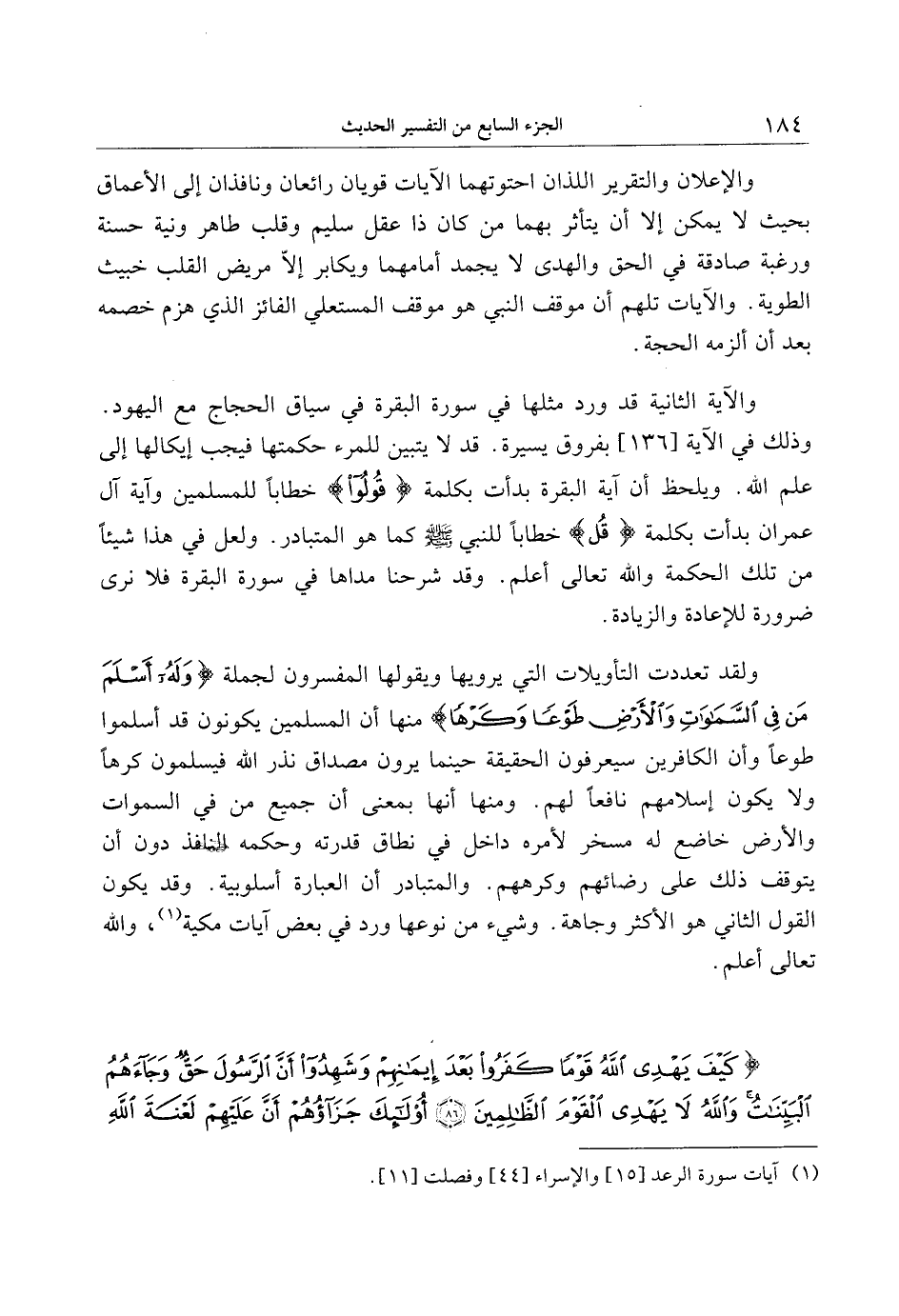 ولقد تعددت التأويلات التي يرويها ويقولها المفسرون لجملة وَلَهُ أَسْلَمَ مَنْ فِي السَّماواتِ وَالْأَرْضِ طَوْعاً وَكَرْهاً منها أن المسلمين يكونون قد أسلموا طوعا وأن الكافرين سيعرفون الحقيقة حينما يرون مصداق نذر الله فيسلمون كرها ولا يكون إسلامهم نافعا لهم. ومنها أنها بمعنى أن جميع من في السموات والأرض خاضع له مسخر لأمره داخل في نطاق قدرته وحكمه النافذ دون أن يتوقف ذلك على رضائهم وكرههم. والمتبادر أن العبارة أسلوبية. وقد يكون القول الثاني هو الأكثر وجاهة. وشيء من نوعها ورد في بعض آيات مكية «1» ، والله تعالى أعلم.