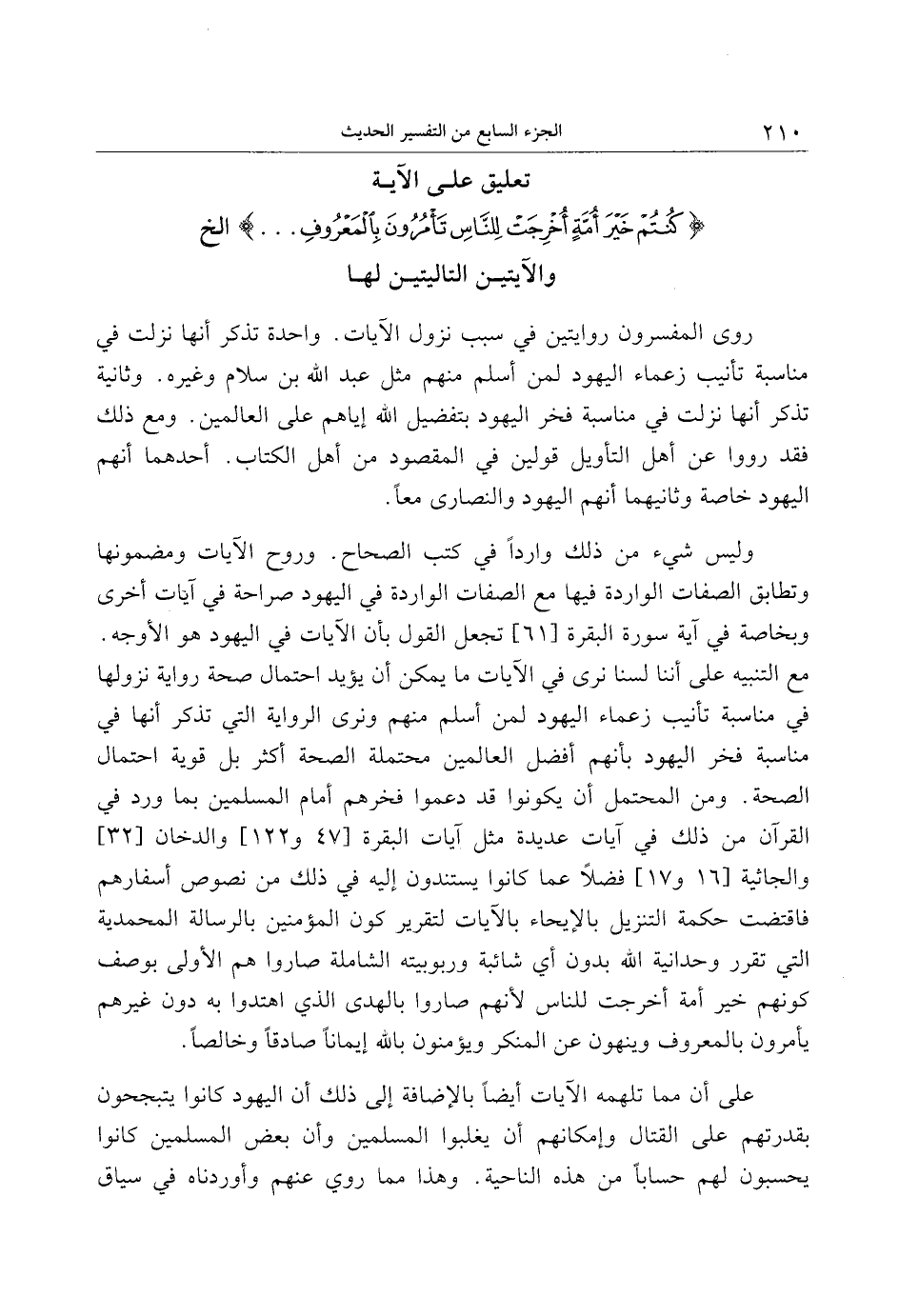 تعليق على الآية كُنْتُمْ خَيْرَ أُمَّةٍ أُخْرِجَتْ لِلنَّاسِ تَأْمُرُونَ بِالْمَعْرُوفِ ... إلخ والآيتين التاليتين لها