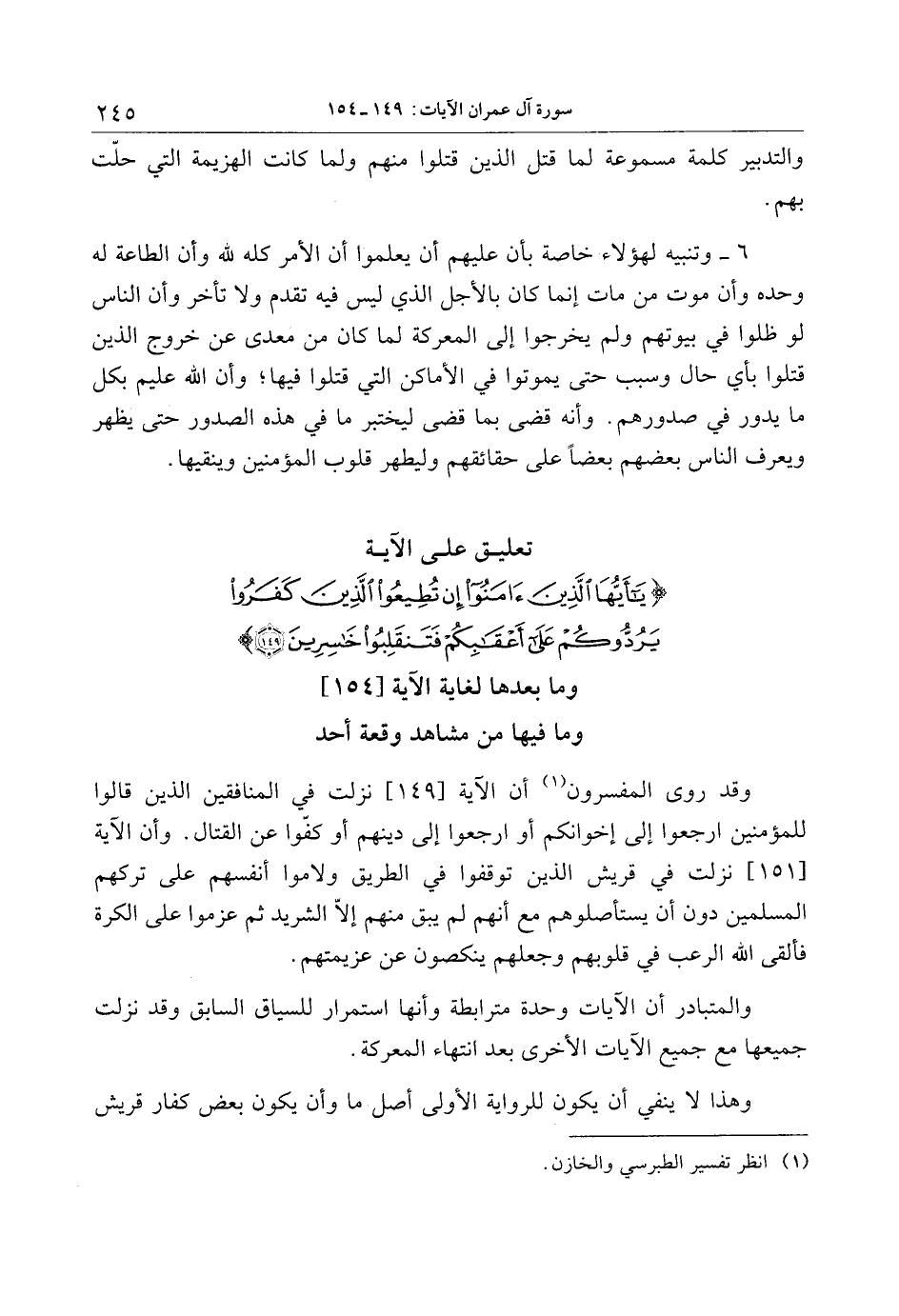 تعليق على الآية يا أَيُّهَا الَّذِينَ آمَنُوا إِنْ تُطِيعُوا الَّذِينَ كَفَرُوا يَرُدُّوكُمْ عَلى أَعْقابِكُمْ فَتَنْقَلِبُوا خاسِرِينَ (149) وما بعدها لغاية الآية [154] وما فيها من مشاهد وقعة أحد