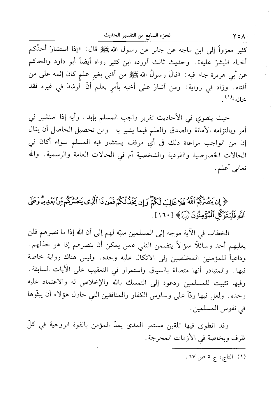 كثير معزوا إلى ابن ماجه عن جابر عن رسول الله صلى الله عليه وسلم قال: «إذا استشار أحدكم أخاه فليشر عليه» . وحديث ثالث أورده ابن كثير رواه أيضا أبو داود والحاكم عن أبي هريرة جاء فيه: «قال رسول الله صلى الله عليه وسلم من أفتى بغير علم كان إثمه على من أفتاه. وزاد في رواية: ومن أشار على أخيه بأمر يعلم أنّ الرشد في غيره فقد خانه» «1» .