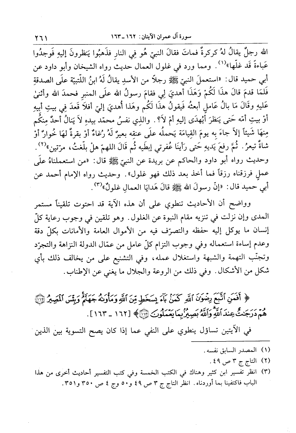 (3) انظر تفسير ابن كثير وهناك في الكتب الخمسة وفي كتب التفسير أحاديث أخرى من هذا الباب فاكتفينا بما أوردناه. انظر التاج ج 3 ص 49 و 50 وج 4 ص 350 و 351.