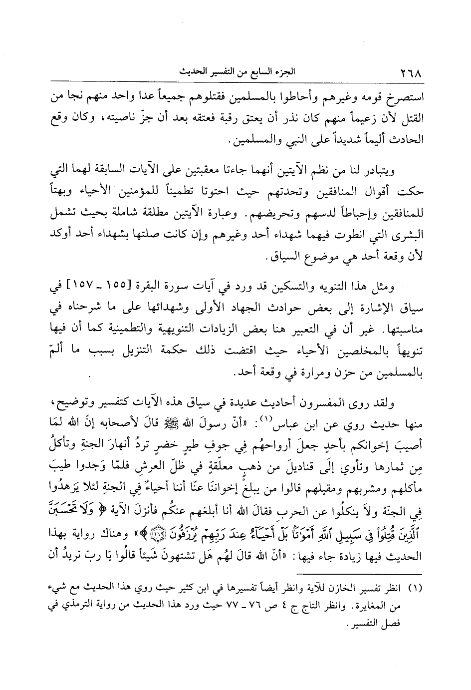 (1) انظر تفسير الخازن للآية وانظر أيضا تفسيرها في ابن كثير حيث روي هذا الحديث مع شيء من المغايرة. وانظر التاج ج 4 ص 76- 77 حيث ورد هذا الحديث من رواية الترمذي في فصل التفسير.