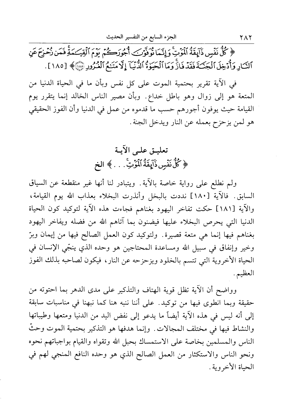 تعليق على الآية كُلُّ نَفْسٍ ذائِقَةُ الْمَوْتِ ... إلخ