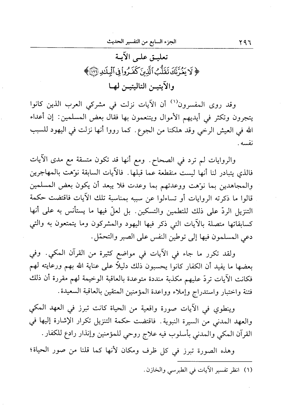 تعليق على الآية لا يَغُرَّنَّكَ تَقَلُّبُ الَّذِينَ كَفَرُوا فِي الْبِلادِ (196) والآيتين التاليتين لها