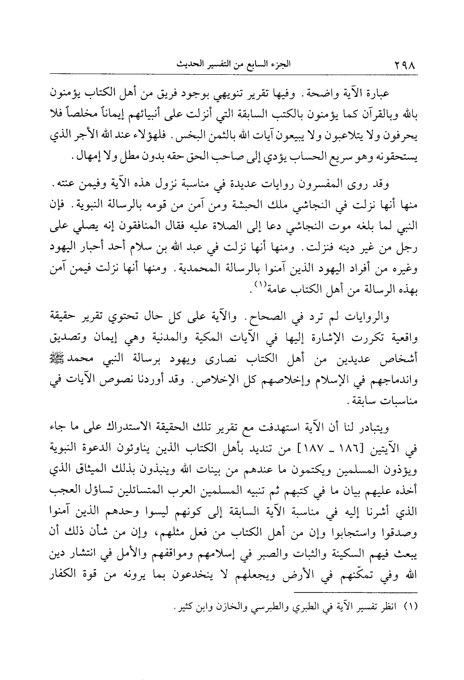 والروايات لم ترد في الصحاح. والآية على كل حال تحتوي تقرير حقيقة واقعية تكررت الإشارة إليها في الآيات المكية والمدنية وهي إيمان وتصديق أشخاص عديدين من أهل الكتاب نصارى ويهود برسالة النبي محمد صلى الله عليه وسلم واندماجهم في الإسلام وإخلاصهم كل الإخلاص. وقد أوردنا نصوص الآيات في مناسبات سابقة.