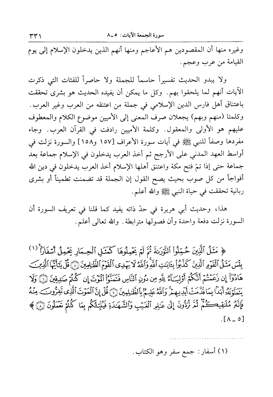 هذا، وحديث أبي هريرة في حدّ ذاته يفيد كما قلنا في تعريف السورة أن السورة نزلت دفعة واحدة وأن فصولها مترابطة. والله تعالى أعلم.