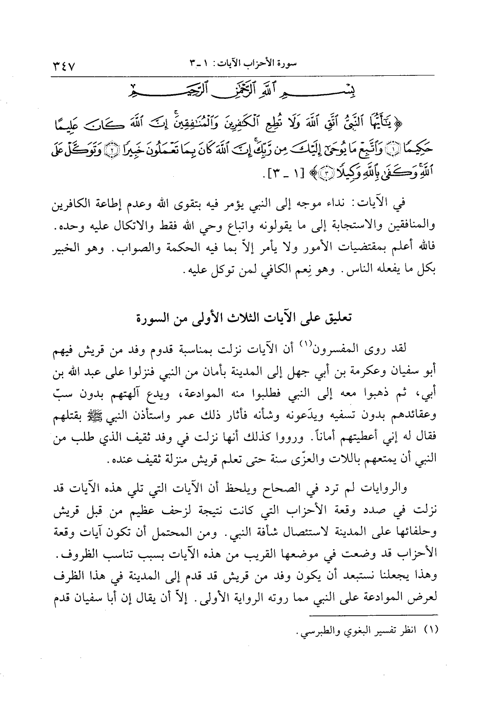 [سورة الأحزاب (33) : الآيات 1 الى 3]