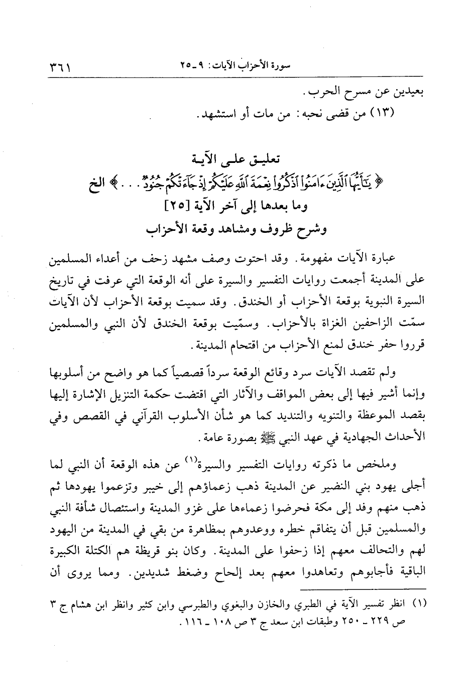 (1) انظر تفسير الآية في الطبري والخازن والبغوي والطبرسي وابن كثير وانظر ابن هشام ج 3 ص 229- 250 وطبقات ابن سعد ج 3 ص 108- 116.