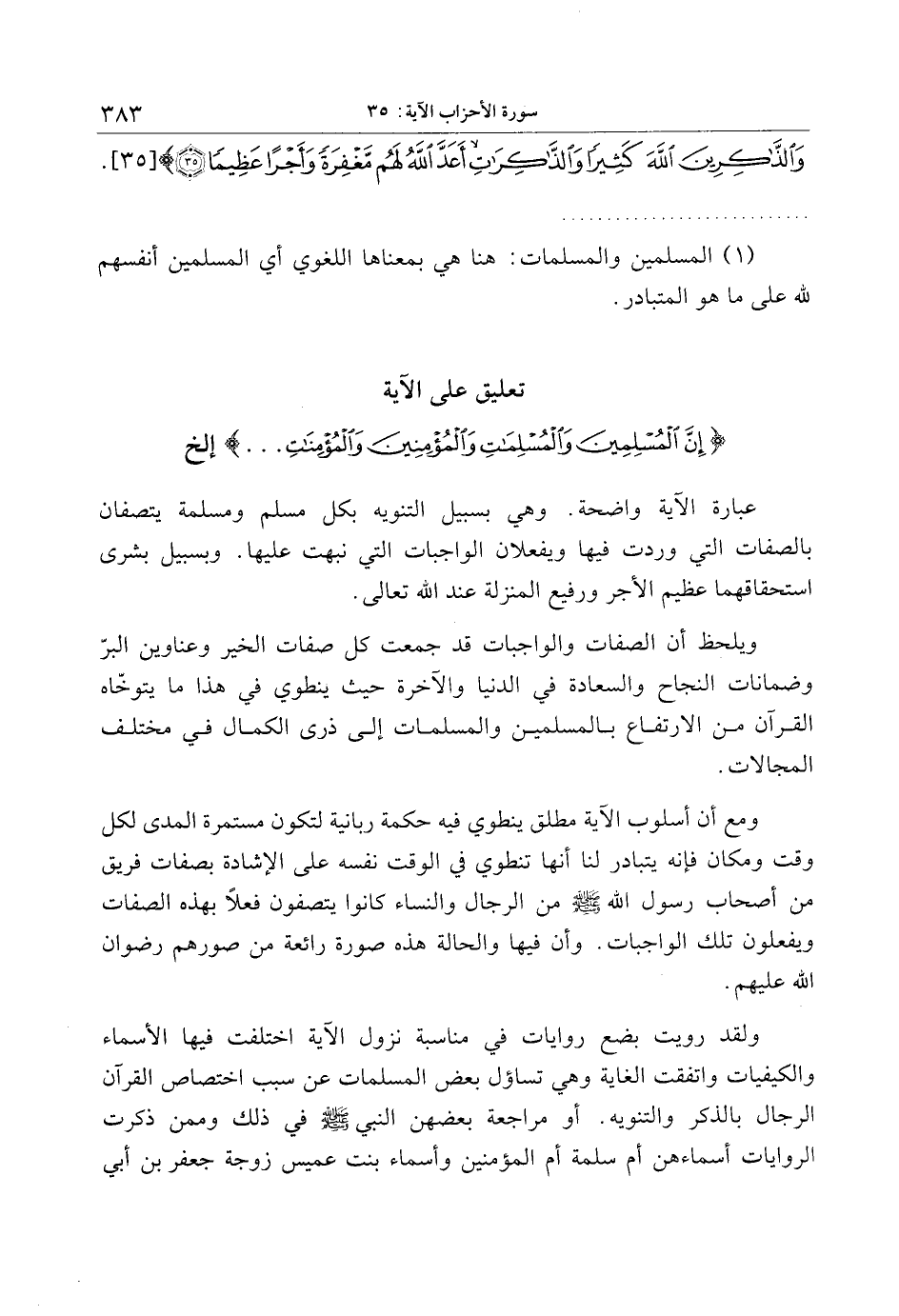 تعليق على الآية إِنَّ الْمُسْلِمِينَ وَالْمُسْلِماتِ وَالْمُؤْمِنِينَ وَالْمُؤْمِناتِ ... إلخ