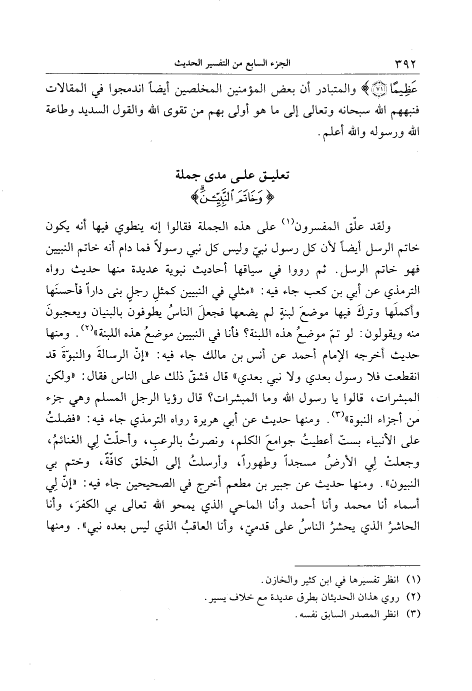 تعليق على مدى جملة وَخاتَمَ النَّبِيِّينَ