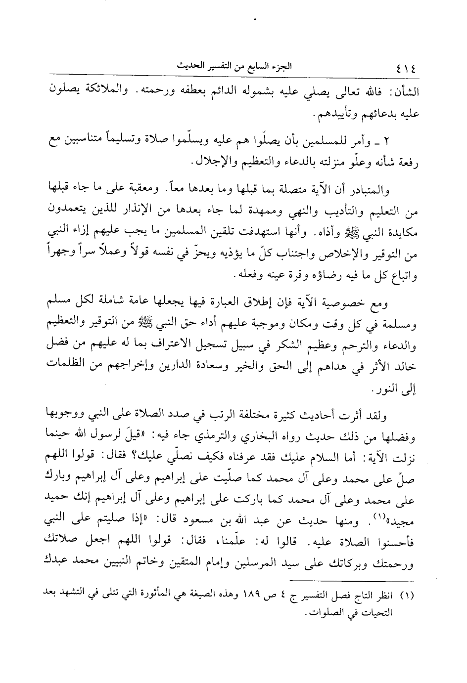 (1) انظر التاج فصل التفسير ج 4 ص 189 وهذه الصيغة هي المأثورة التي تتلى في التشهد بعد التحيات في الصلوات. [.....]