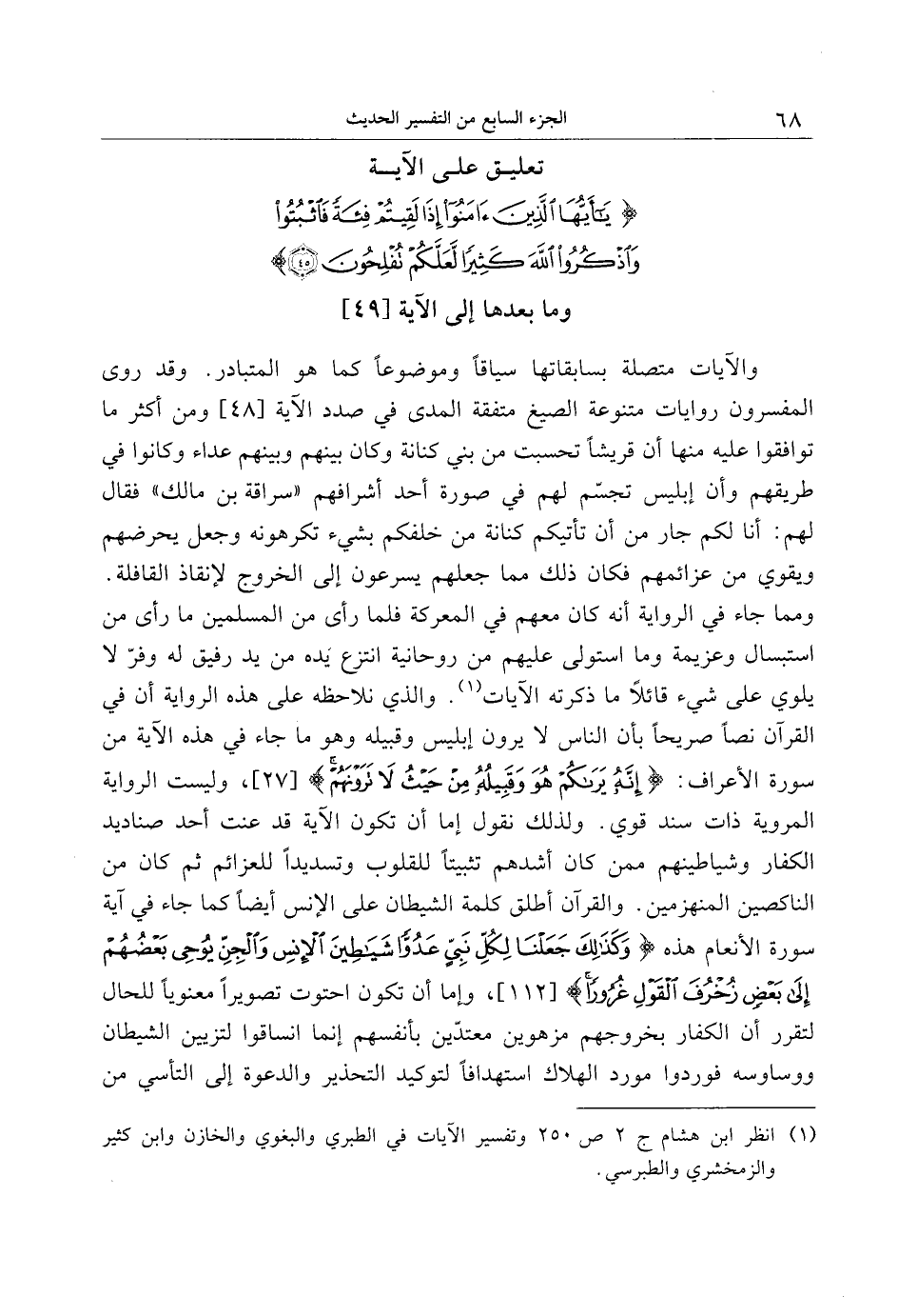 تعليق على الآية يا أَيُّهَا الَّذِينَ آمَنُوا إِذا لَقِيتُمْ فِئَةً فَاثْبُتُوا وَاذْكُرُوا اللَّهَ كَثِيراً لَعَلَّكُمْ تُفْلِحُونَ (45) وما بعدها إلى الآية [49]