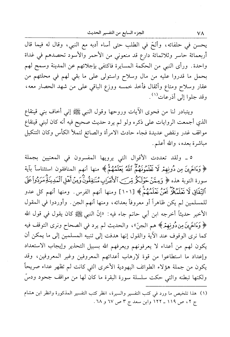 (1) هذا تلخيص ما ورد في كتب التفسير والسيرة، انظر كتب التفسير المذكورة وانظر ابن هشام ج 2، ص 119- 122 وابن سعد ج 3 ص 67 و 68.