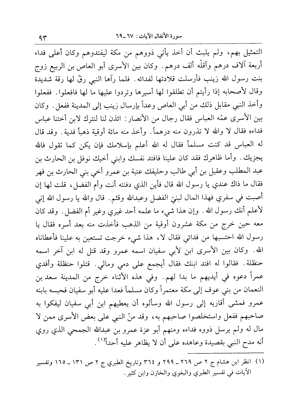 (1) انظر ابن هشام ج 2 ص 269- 299 و 364 وتاريخ الطبري ج 2 ص 131- 165 وتفسير الآيات في تفسير الطبري والبغوي والخازن وابن كثير.