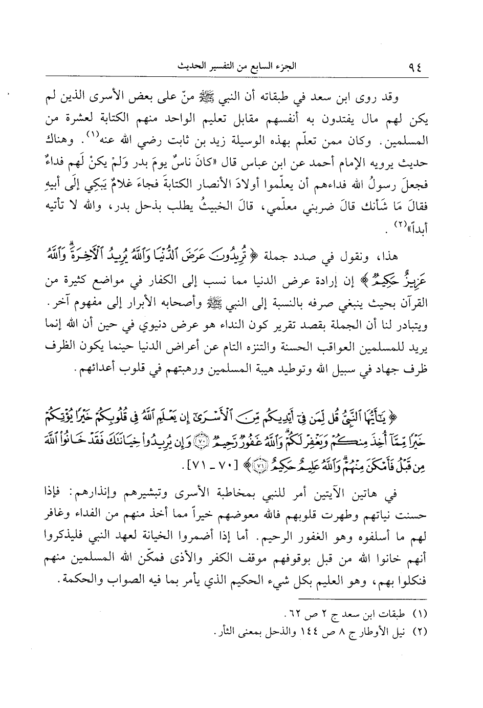 يا أَيُّهَا النَّبِيُّ قُلْ لِمَنْ فِي أَيْدِيكُمْ مِنَ الْأَسْرى إِنْ يَعْلَمِ اللَّهُ فِي قُلُوبِكُمْ خَيْراً يُؤْتِكُمْ خَيْراً مِمَّا أُخِذَ مِنْكُمْ وَيَغْفِرْ لَكُمْ وَاللَّهُ غَفُورٌ رَحِيمٌ (70) وَإِنْ يُرِيدُوا خِيانَتَكَ فَقَدْ خانُوا اللَّهَ مِنْ قَبْلُ فَأَمْكَنَ مِنْهُمْ وَاللَّهُ عَلِيمٌ حَكِيمٌ (71)