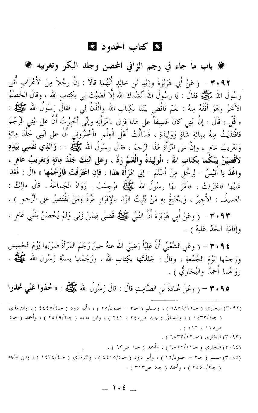 3095 - (وَعَنْ عُبَادَةَ بْنِ الصَّامِتِ قَالَ: «قَالَ رَسُولُ اللَّهِ - صَلَّى اللَّهُ عَلَيْهِ وَسَلَّمَ -: خُذُوا عَنِّي خُذُوا