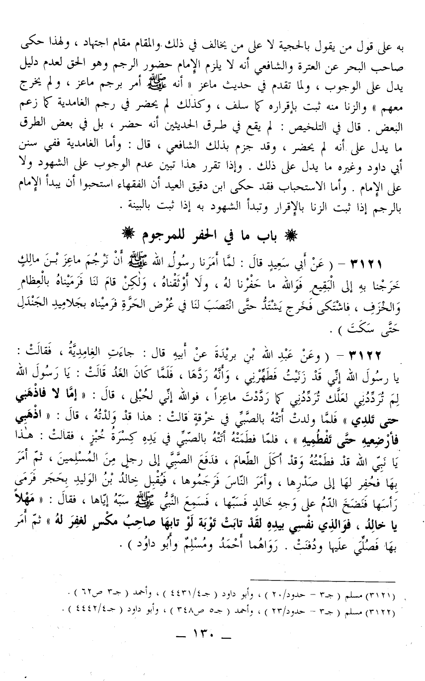 3121 - (عَنْ أَبِي سَعِيدٍ قَالَ: «لَمَّا أَمَرَنَا رَسُولُ اللَّهِ - صَلَّى اللَّهُ عَلَيْهِ وَسَلَّمَ - أَنْ نَرْجُمَ مَاعِزَ بْنَ مَالِكٍ خَرَجْنَا بِهِ إلَى الْبَقِيعِ فَوَاَللَّهِ مَا حَفَرْنَا لَهُ، وَلَا أَوْثَقْنَاهُ، وَلَكِنْ قَامَ لَنَا فَرَمَيْنَاهُ بِالْعِظَامِ وَالْخَزَفِ، فَاشْتَكَى فَخَرَجَ يَشْتَدُّ حَتَّى انْتَصَبَ لَنَا فِي عُرْضِ الْحَرَّةِ فَرَمَيْنَاهُ بِجَلَامِيدِ الْجَنْدَلِ حَتَّى سَكَتَ» .