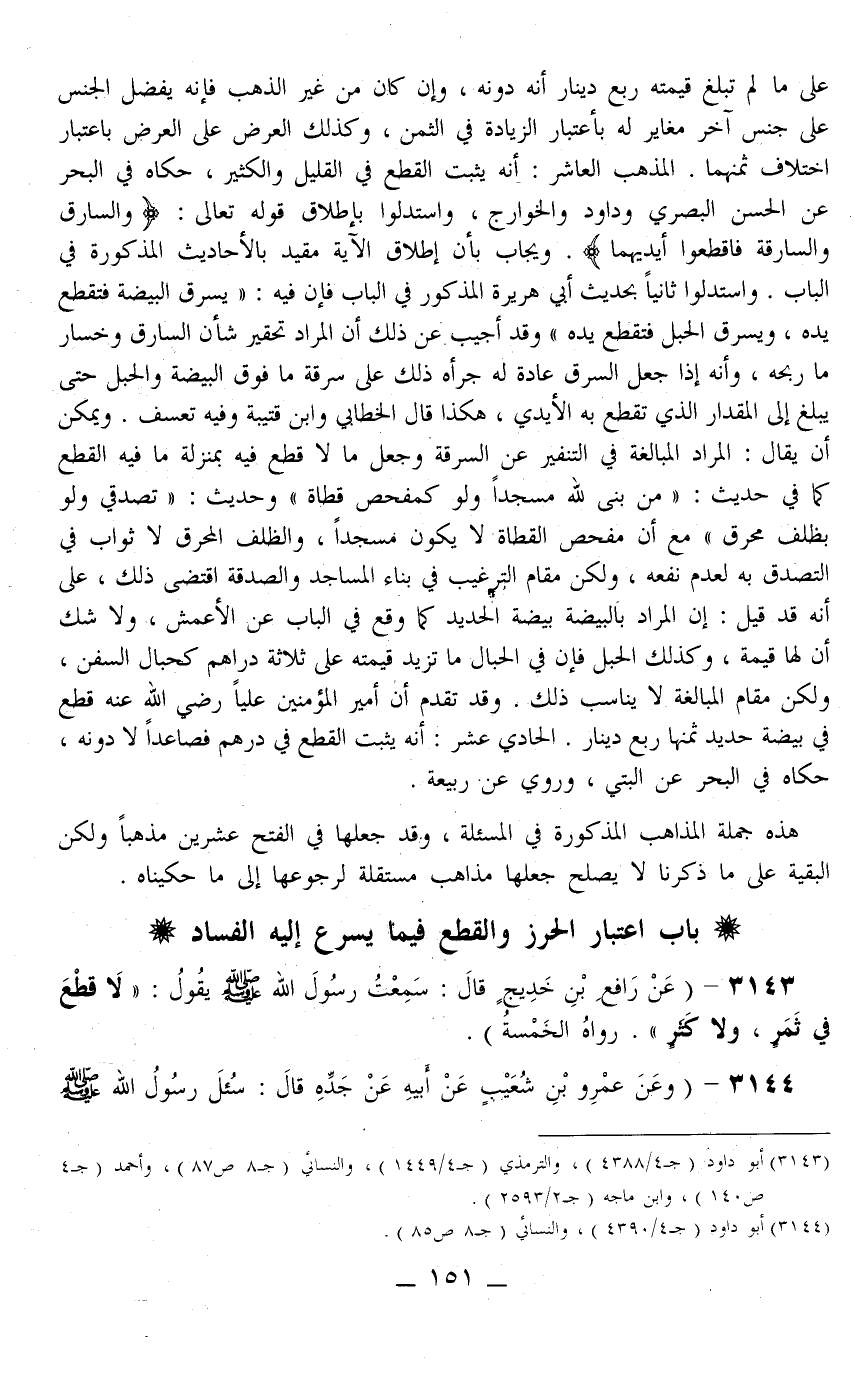3143 - (عَنْ رَافِعِ بْنِ خَدِيجٍ قَالَ: سَمِعْت رَسُولَ اللَّهِ - صَلَّى اللَّهُ عَلَيْهِ وَسَلَّمَ - يَقُولُ: «لَا قَطْعَ فِي ثَمَرٍ، وَلَا كَثَرٍ» . رَوَاهُ الْخَمْسَةُ) .