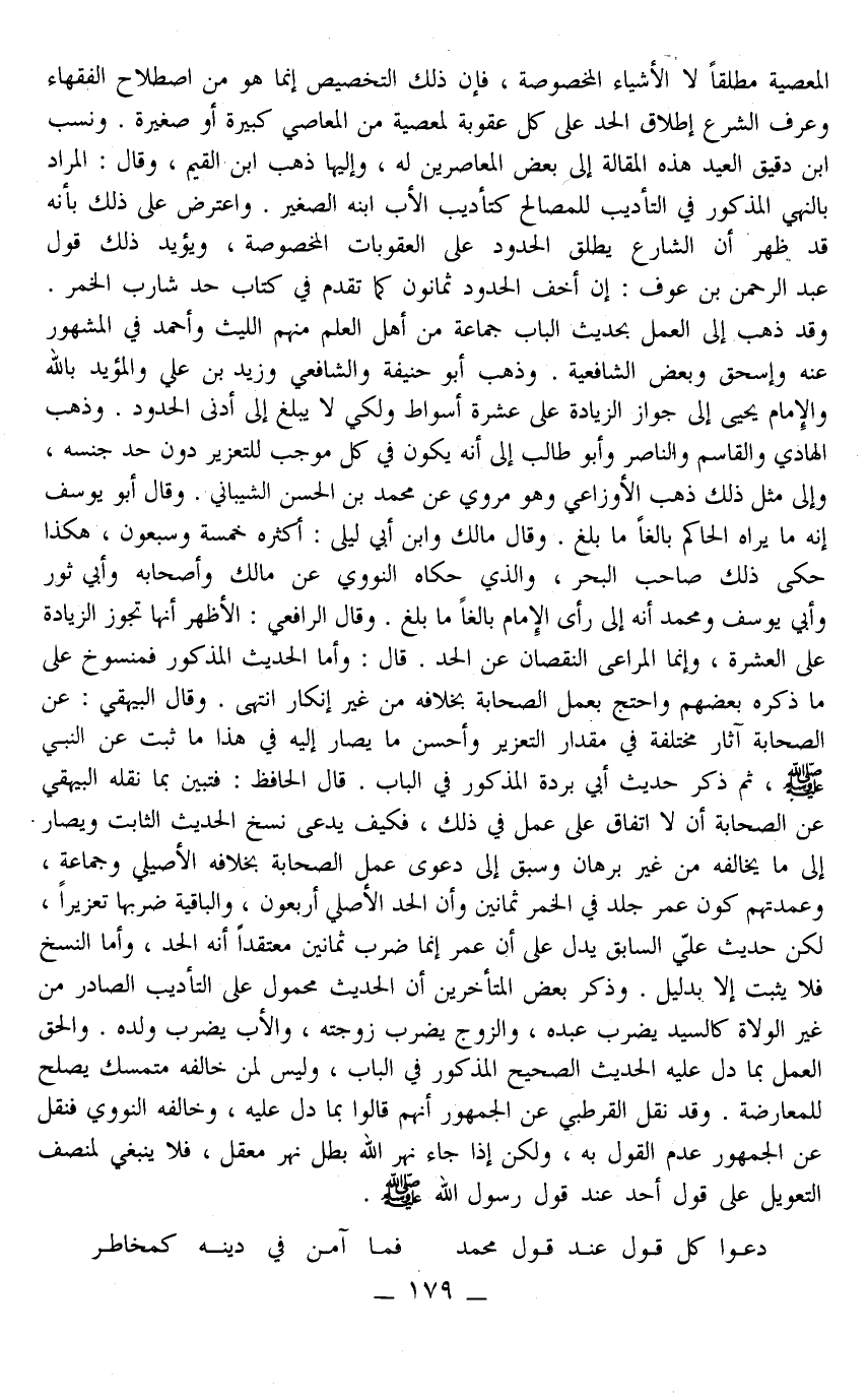 قَالَ: وَأَمَّا الْحَدِيثُ الْمَذْكُورُ فَمَنْسُوخٌ عَلَى مَا ذَكَرَهُ بَعْضُهُمْ وَاحْتَجَّ بِعَمَلِ الصَّحَابَةِ بِخِلَافِهِ مِنْ غَيْرِ إنْكَارٍ انْتَهَى. وَقَالَ الْبَيْهَقِيُّ عَنْ الصَّحَابَةِ آثَارٌ مُخْتَلِفَةٌ فِي مِقْدَارِ التَّعْزِيرِ وَأَحْسَنُ مَا يُصَارُ إلَيْهِ فِي هَذَا مَا ثَبَتَ عَنْ النَّبِيِّ - صَلَّى اللَّهُ عَلَيْهِ وَسَلَّمَ -، ثُمَّ ذَكَرَ حَدِيثَ أَبِي بُرْدَةَ الْمَذْكُورَ فِي الْبَابِ. قَالَ الْحَافِظُ: فَتَبَيَّنَ بِمَا نَقَلَهُ الْبَيْهَقِيُّ عَنْ الصَّحَابَةِ أَنْ لَا اتِّفَاقَ عَلَى عَمَلٍ فِي ذَلِكَ، وَكَيْفَ يُدَّعَى نَسْخُ الْحَدِيثِ الثَّابِتِ وَيُصَارُ إلَى مَا يُخَالِفُهُ مِنْ غَيْرِ بُرْهَانٍ وَسَبَقَ إلَى دَعْوَى عَمَلِ الصَّحَابَةِ بِخِلَافِهِ الْأَصِيلِيُّ وَجَمَاعَةٌ، وَعُمْدَتُهُمْ كَوْنُ عُمَرَ جَلَدَ فِي الْخَمْرِ ثَمَانِينَ وَأَنَّ الْحَدَّ الْأَصْلِيَّ أَرْبَعُونَ، وَالْبَاقِيَةُ ضَرَبَهَا تَعْزِيرًا، لَكِنَّ حَدِيثَ عَلِيٍّ السَّابِقَ يَدُلُّ عَلَى أَنَّ عُمَرَ إنَّمَا ضَرَبَ ثَمَانِينَ مُعْتَقِدًا أَنَّهُ الْحَدُّ، وَأَمَّا النَّسْخُ فَلَا يَثْبُتُ إلَّا بِدَلِيلٍ.