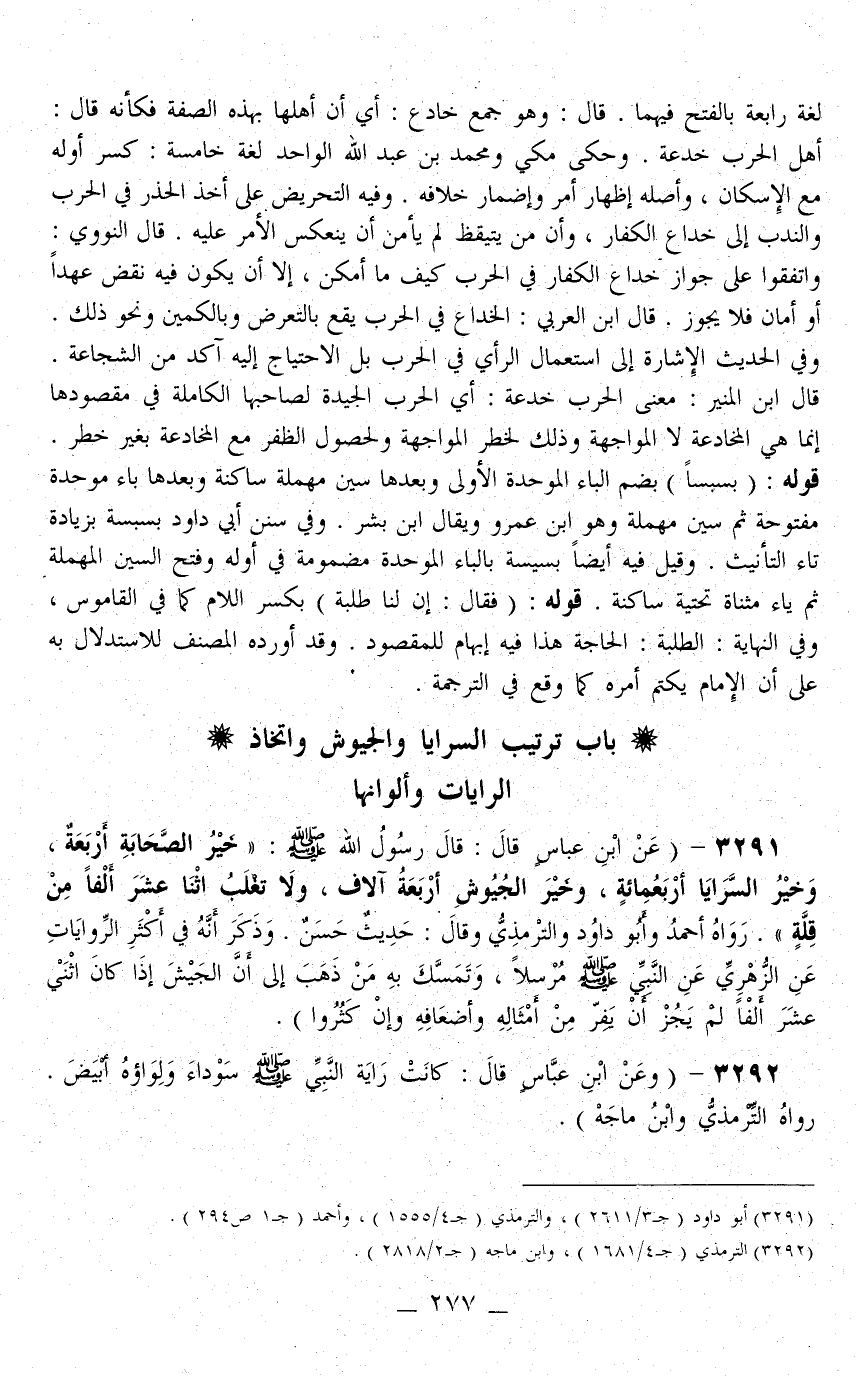 3291 - (عَنْ ابْنِ عَبَّاسٍ قَالَ: قَالَ رَسُولُ اللَّهِ - صَلَّى اللَّهُ عَلَيْهِ وَسَلَّمَ -: «خَيْرُ الصَّحَابَةِ أَرْبَعَةٌ، وَخَيْرُ السَّرَايَا أَرْبَعُمِائَةٍ، وَخَيْرُ الْجُيُوشِ أَرْبَعَةُ آلَافٍ، وَلَا تُغْلَبُ اثْنَا عَشَرَ أَلْفًا مِنْ قِلَّةٍ» . رَوَاهُ أَحْمَدُ وَأَبُو دَاوُد وَالتِّرْمِذِيُّ وَقَالَ: حَدِيثٌ حَسَنٌ. وَذَكَرَ أَنَّهُ فِي أَكْثَرِ الرِّوَايَاتِ عَنْ الزُّهْرِيِّ عَنْ النَّبِيِّ - صَلَّى اللَّهُ عَلَيْهِ وَسَلَّمَ - مُرْسَلًا، وَتَمَسَّكَ بِهِ مَنْ ذَهَبَ إلَى أَنَّ الْجَيْشَ إذَا كَانَ اثْنَيْ عَشَرَ أَلْفًا لَمْ يَجُزْ أَنْ يَفِرَّ مِنْ أَمْثَالِهِ وَأَضْعَافِهِ وَإِنْ كَثُرُوا) .