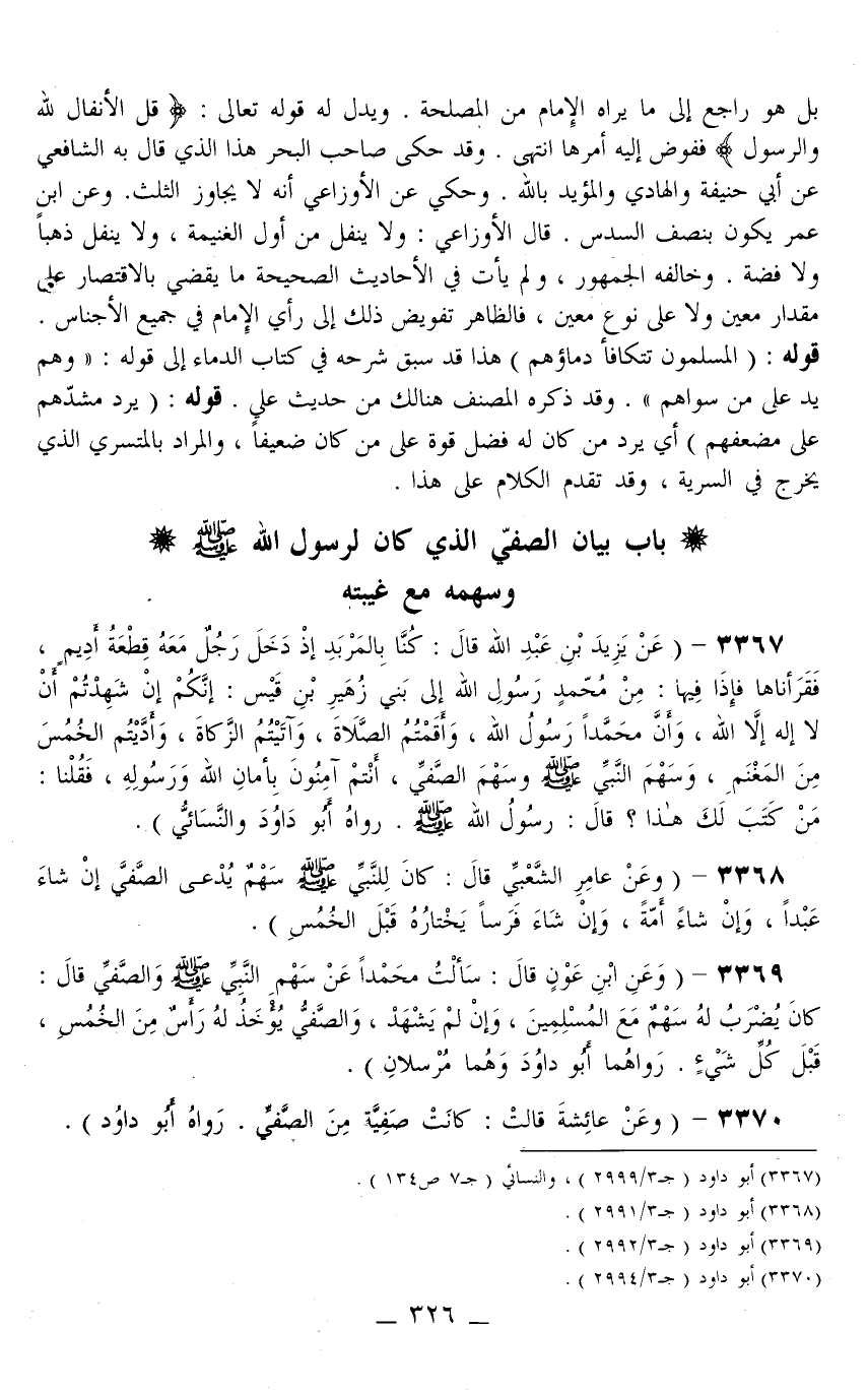 3369 - (وَعَنْ ابْنِ عَوْنٍ قَالَ: «سَأَلْت مُحَمَّدًا عَنْ سَهْمِ النَّبِيِّ - صَلَّى اللَّهُ عَلَيْهِ وَسَلَّمَ - وَالصَّفِيِّ قَالَ: كَانَ يُضْرَبُ لَهُ سَهْمٌ مَعَ الْمُسْلِمِينَ، وَإِنْ لَمْ يَشْهَدْ، وَالصَّفِيُّ يُؤْخَذُ لَهُ رَأْسٌ مِنْ الْخُمُسِ، قَبْلَ كُلِّ شَيْءٍ» . رَوَاهُمَا أَبُو دَاوُد وَهُمَا مُرْسَلَانِ) .